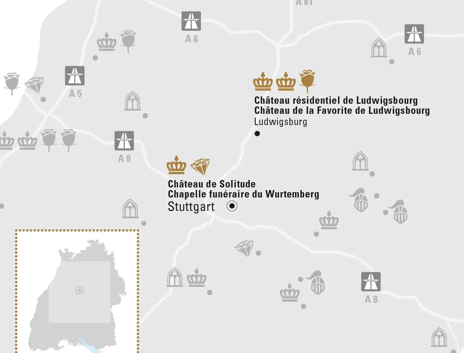 N'en déplaise à la modernité et au dynamisme de la région économique autour de Stuttgart : il subsiste à de nombreux endroits des témoins du temps passé. Pendant des siècles, les seigneurs du Wurtemberg ont marqué leurs villes de résidence Ludwigsburg et Stuttgart de leur empreinte princière.